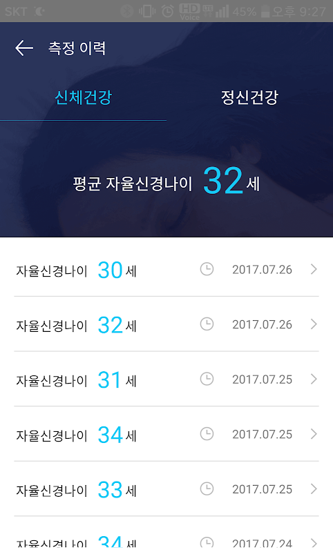 - 신체(자율신경)나이, 스트레스, 누적피로도, 심장건강도,