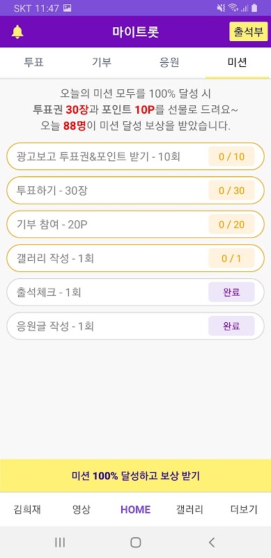 享受小跑。 Kim Hee-jae的最新歌曲每天更新,您可以投票選出最喜歡的歌手,註冊支持職位,並通過積分收集捐款。