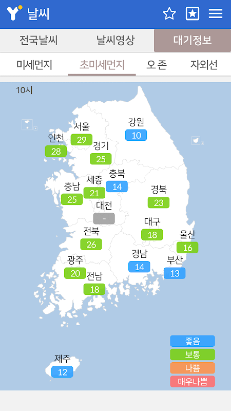 미세먼지, 초미세먼지, 오존, 자외선 등 대기정보를 확인할 수 있습니다.