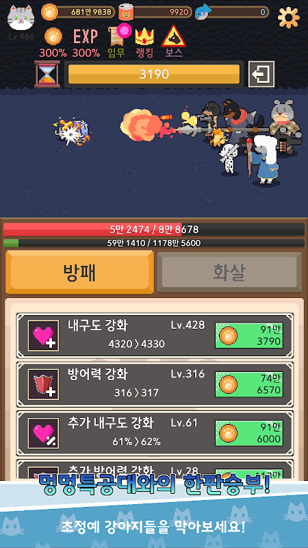 - 用各種盾牌和貓技能阻擋日益強大的敵人!