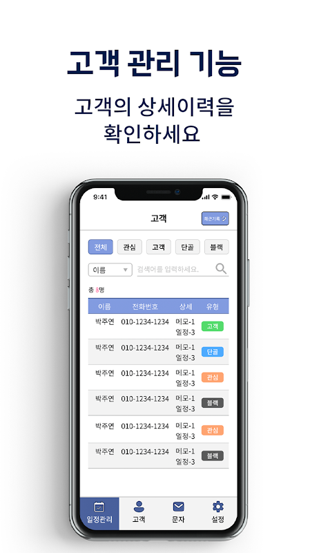 - 您可以查看詳細的歷史記錄,例如客戶日程和諮詢記錄,並向客戶發送促銷/行銷簡訊。