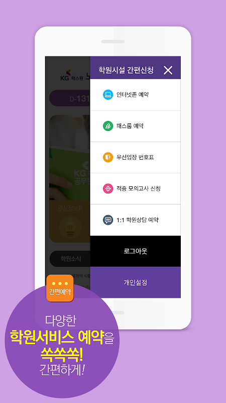 예약 및 강의실 우선입장 번호표 발급, 적중모의고사 신청까지 앱에서 가능!
