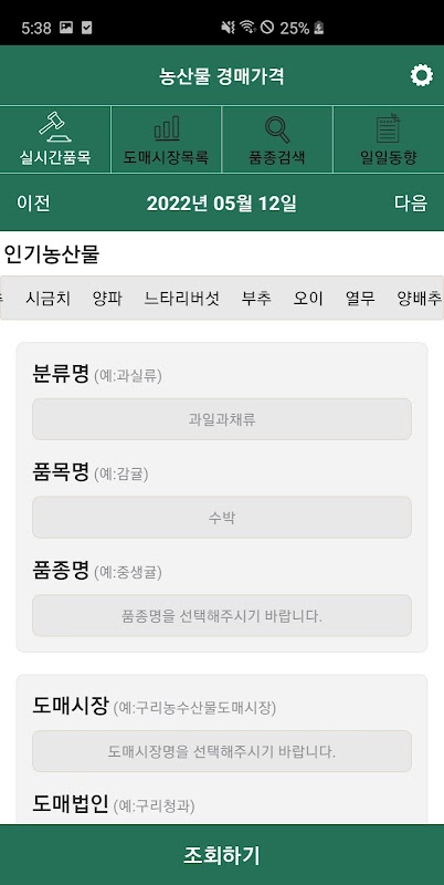 농산물 경매가격 - 실시간 경락가격 조회 1.2
