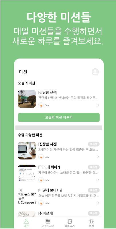 • 매일 제공되는 다양하고 간단한 미션!