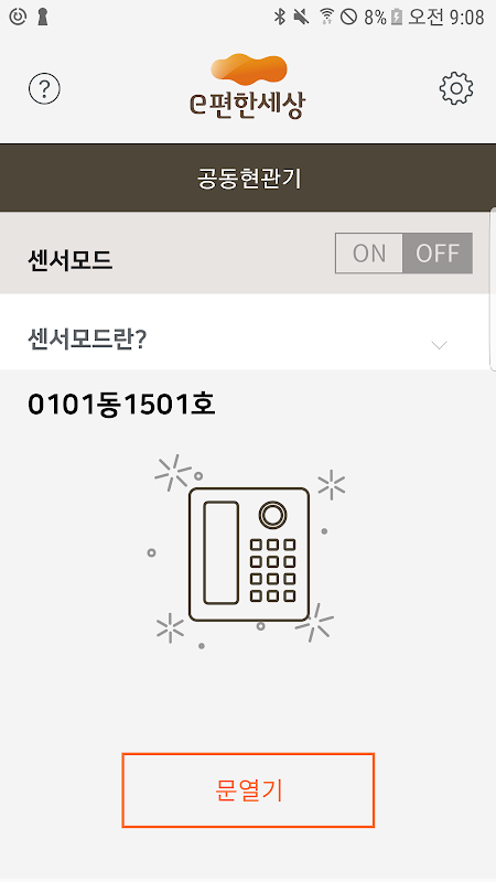 이 앱의 주요 목적은 스마튼폰에 미리 세대번호 및 비밀번호를 저장하고 스마트폰의 블루투스(BLE) 기능을 이용하여 공동현관 출입문을 제어합니다.