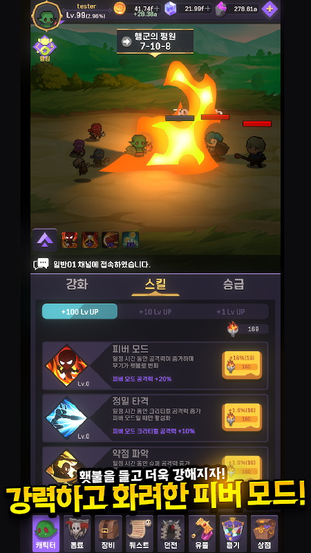 피버모드엔 더욱 화려하고 강력한 전투를 경험할 수 있어요