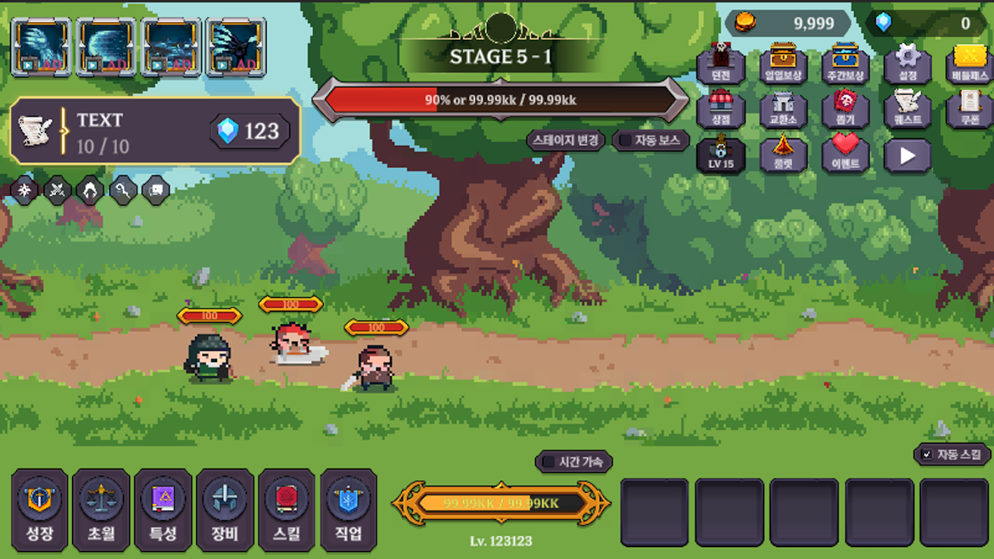 遊戲是一款閒置角色扮演遊戲,即使玩家沒有登入遊戲,角色也會自動探索地下城並獲得資源。