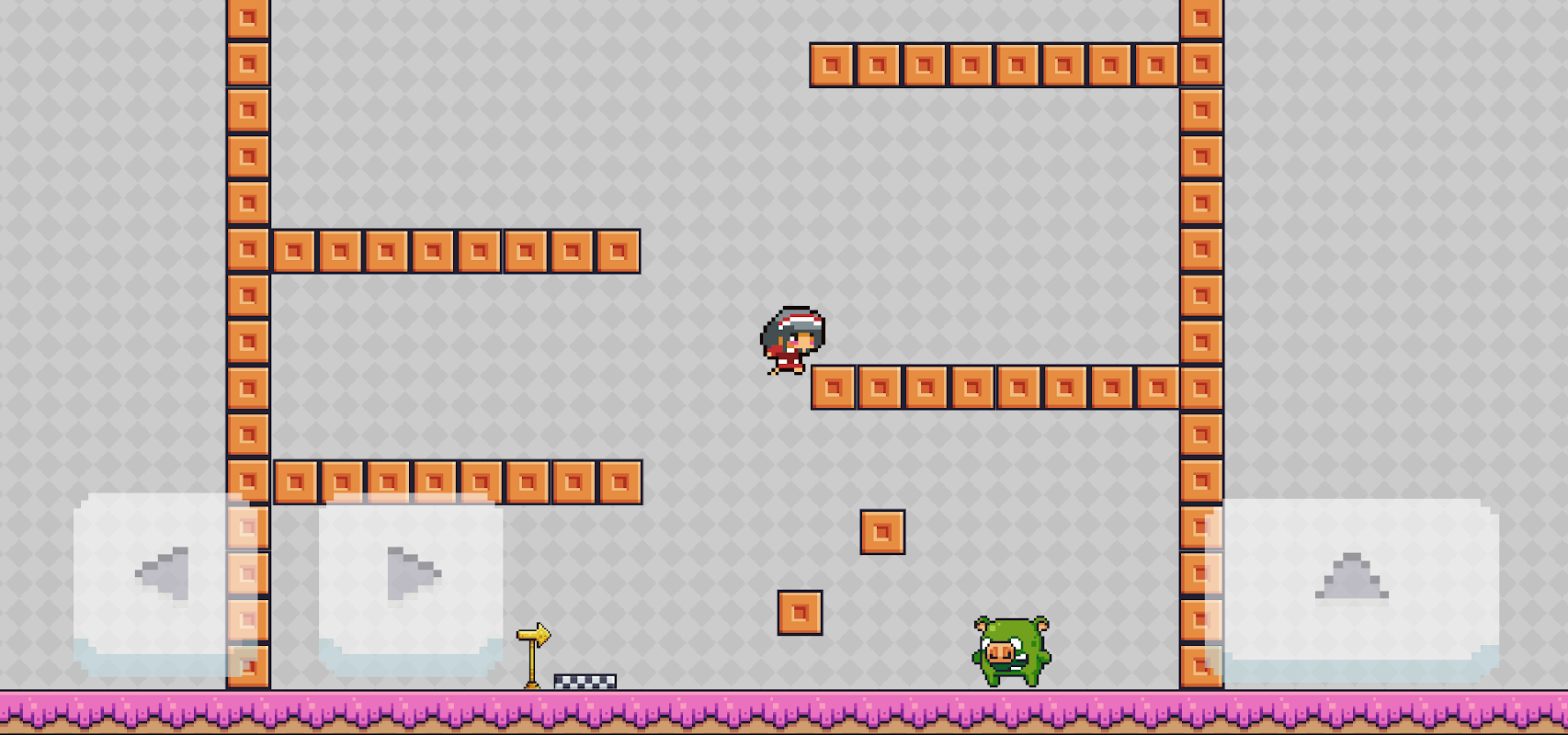 도시락을 두고와서 찾으러가는 여자아이 하지만 장애물있어 장애물과 도시락을 강탈하려는 돼지들을 피해 도시락을 찾으러 가는 게임