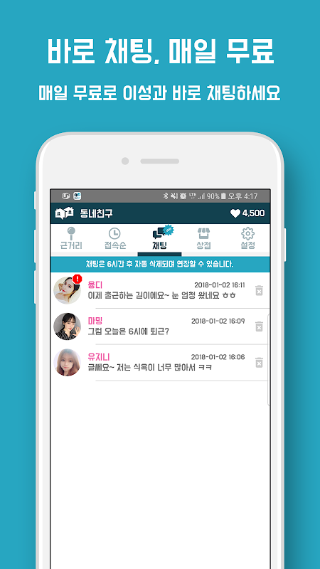 기존의 미팅과는 다릅니다. 가까운 채팅친구를 쉽게 찾을 수 있어요. 그리고 무료채팅이 가능합니다. 새로운 인연과의 대화, 그리고 만남은 언제나 설레입니다.