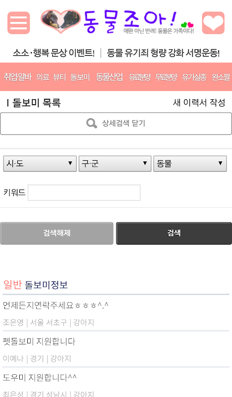 반려동물산업 취업·알바·아르바이트 등 구인구직 부분 오픈