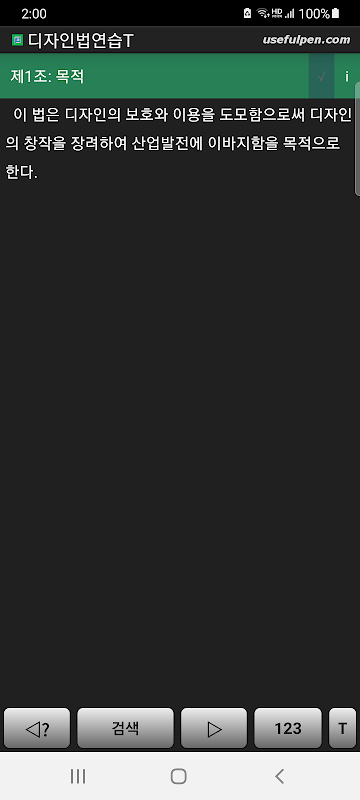 - 현재 조문 반복 듣기: 현재 선택된 조문을 무한 반복해서 들음
