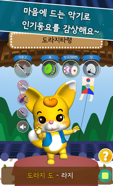 - 9종류의 악기를 바꿔가며 동요를 듣고 따라불러 보세요.