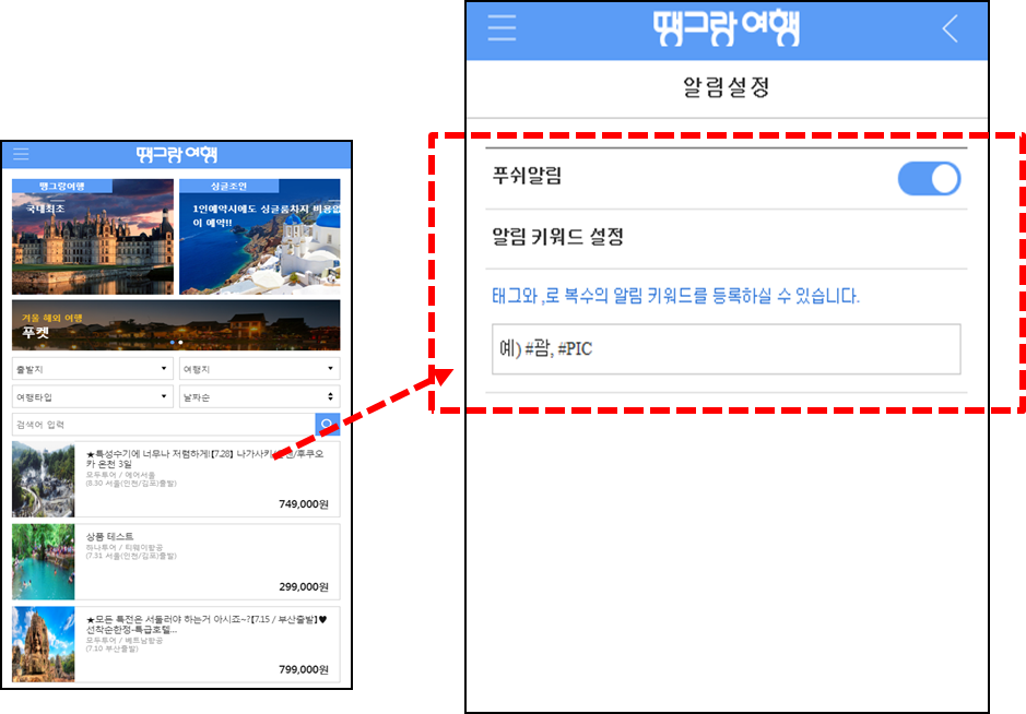 ■ 내가 원하는 지역과 상품의 땡처리여행 알림만 받고 싶다면?
