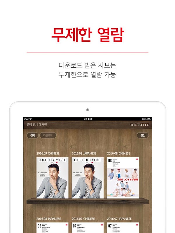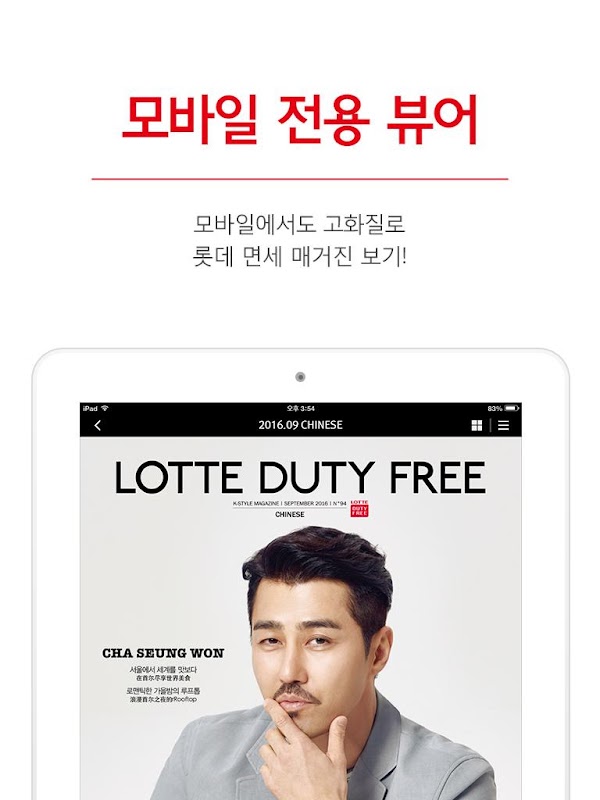 롯데면세점 VIP 고객을 위한 월간지 는 내국인뿐 아니라 한국을 찾는 중국, 일본 관광객에게 쇼핑과 한국적인 문화 컨텐츠를 제공하는 고품격 매거진입니다. 중국판과 일본판 두 종류로 발행하는 매거진을 통해 다양하고 풍부한 쇼핑 정보와 함께 한류를 만끽할 수 있는 한국적의 라이프스타일을 생생하게 경험할 수 있습니다.