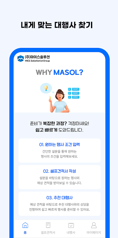 MASOL - MICE 解決方案專家為使用者提供推薦機構以及對使用者正在考慮的活動的估計。