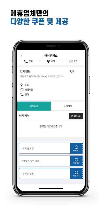 - 대학생들에게만 제공이 되는 제휴업체 리뷰 공간