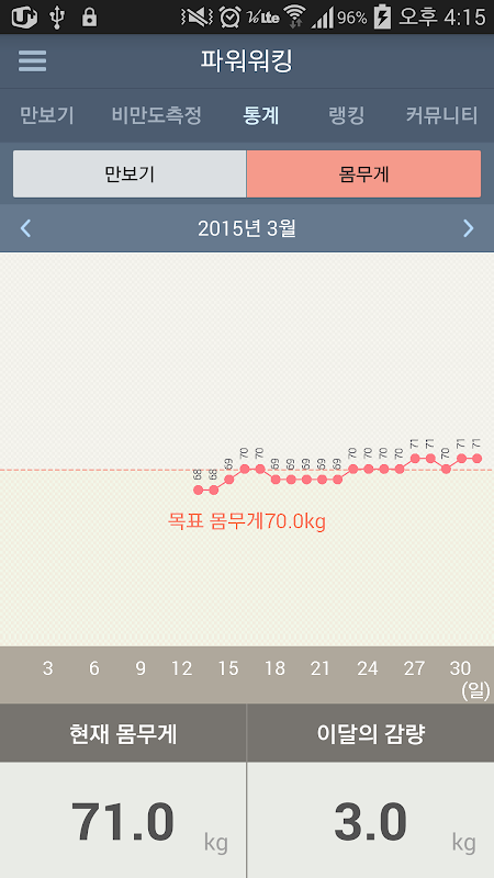 ▶ 월별 만보기, 몸무게 통계 그래프를 제공합니다.