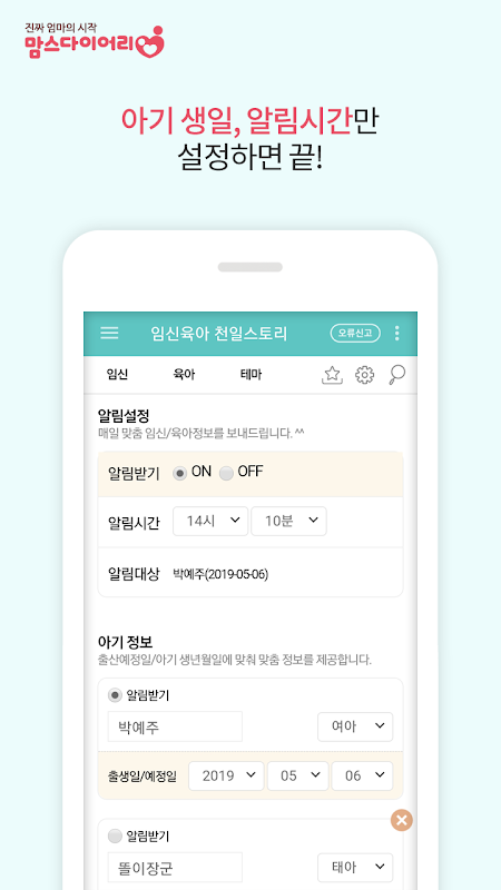 ㆍ 원하는 시간에 하루하나 육아 알림 설정