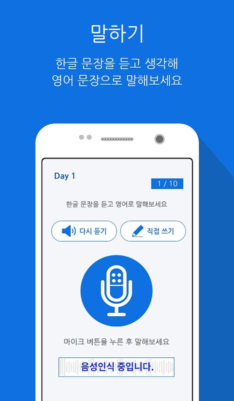 1:1 맞춤형 영어회화 개인과외를 언제 어디서나 1년 365일 이용해보세요. 지금까지 안 되던 영어가 입 밖으로 술술 나오는 변화를 체험할 수 있습니다. 스타강사 앤드류의 강의를 모바일로 시청하고, 영어판다앱을 이용해 배운 것들을 복습하고, Google음성인식 기능을 사용해 말하기 연습을 하면 사용자의 발음, 억양, 표현 등을 정확하게 인식해 즉각적은 피드백을 전달함으로써 효과적으로 말하기 실력을 향상시킬 수 있습니다.