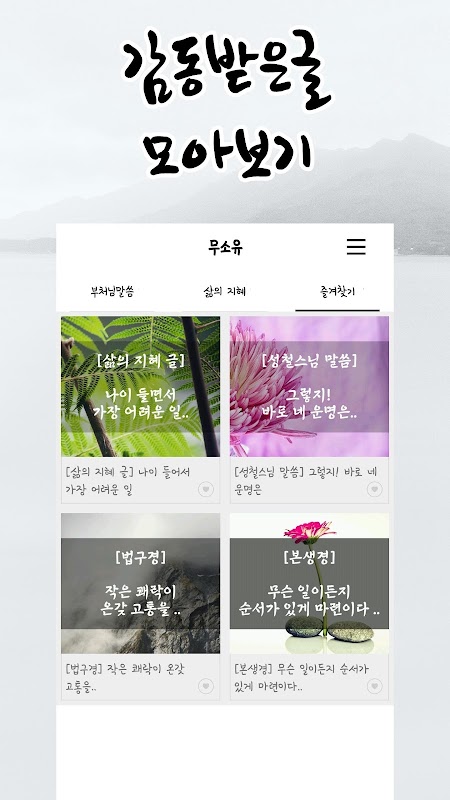 APKPure 使用簽章驗證功能,確保為您提供無病毒的 무소유 - 불교명언, 부처님말씀, 힐링, 삶의 지혜 APK 下載。