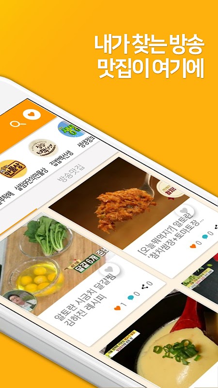 방송별로 나눠진 간단한 아이콘으로 요리 레시피를 쉽게 찾을 수 있어요.