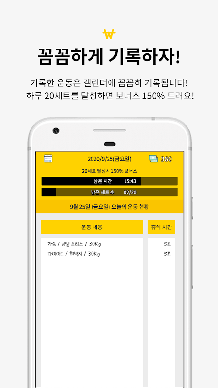 매 운동 세트가 끝나고 휴식할 때 자동으로 룰렛이 돌아가면서 보상금을 최대 500%까지 드립니다!