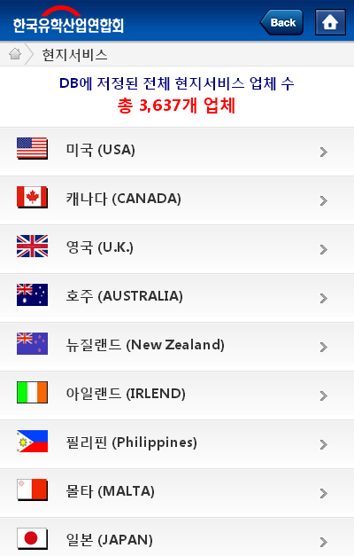 - 전 세계 현지 2,000여 서비스업체 (홈스테이, 공항마중, 택시, 진학서비스 등) 정보 제공