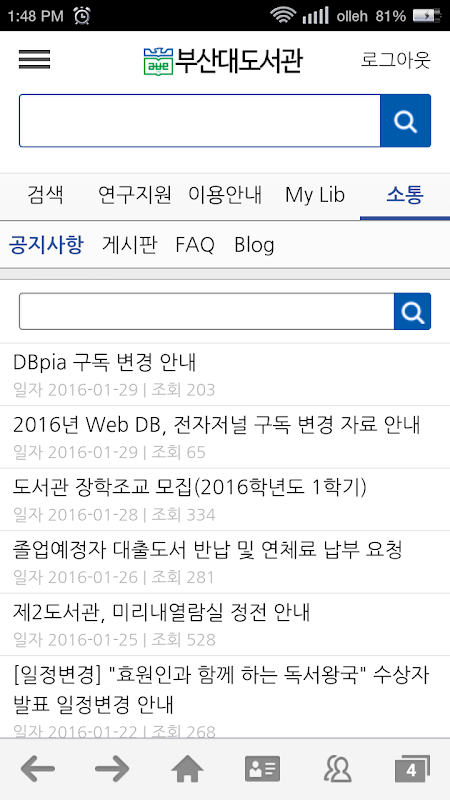 부산대학교 도서관에서 공식으로 배포하는 모바일 도서관 어플리케이션입니다.