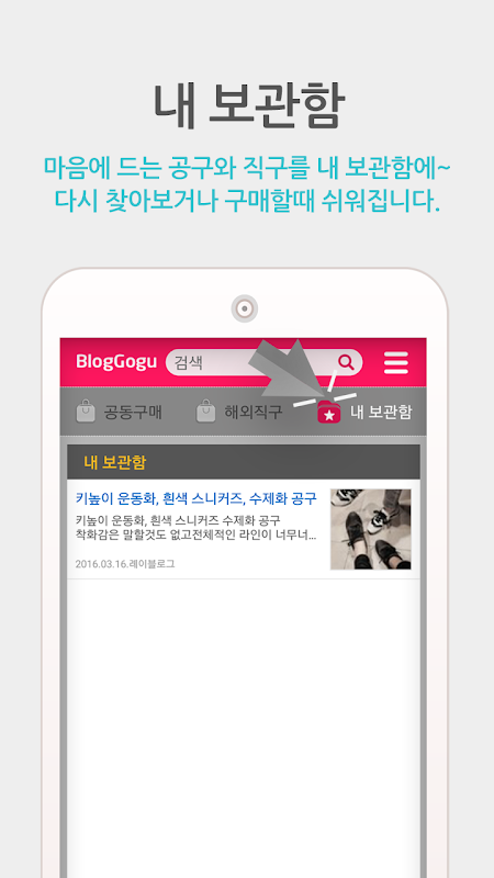- 내보관함 : 공동구매나 해외직구에서 관심있는 포스트를 보관함에 담아놓고 기간내 다시 쇼핑하고 구매할 수 있습니다.