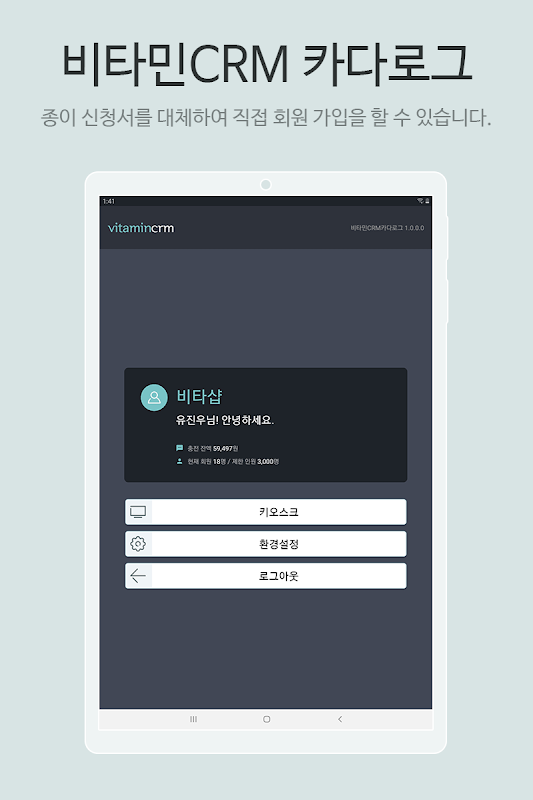 要使用此應用程序,您需要註冊為會員才能從維生素 CRM 管理器應用程序或維生素 CRM 網站 (https://vcrm.kr) 安裝 PC 程序。維他命CRM免費客戶管理程序提供會員信息註冊、管理與銷售、預訂、諮詢、考勤、積分等功能。