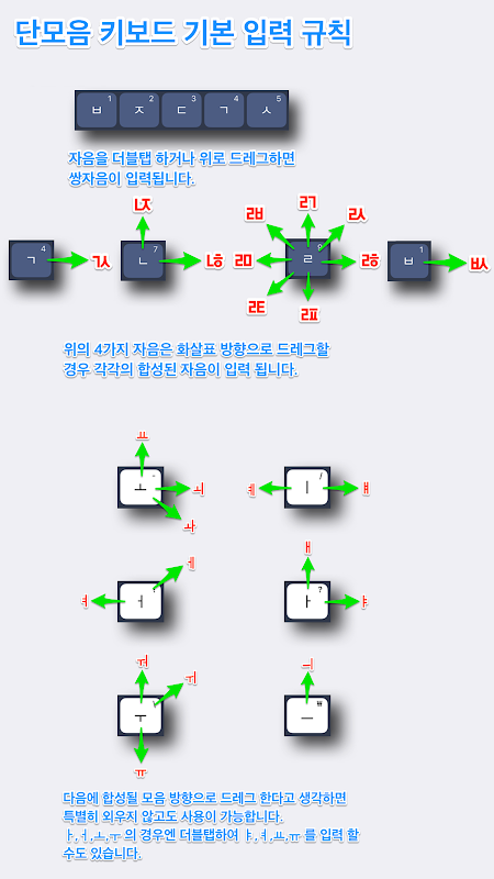 輔音鍵盤是一個創新的鍵盤,僅在鍵盤的鍵盤佈局的輔音主要是進入一個非滑動接觸的方式。即使慢,因為輸入的是,一方面製作,韓文輸入元音和輔音的方式向公交,地鐵或公交很方便它降低了輸入字符數在同一時間進入快25%產量的平均值。例如,如果默認的鍵盤鍵盤輔音國歌1-4的投入可以在此部分中輸入如果你能得到小於300次只輸入了相同的結果400倍。