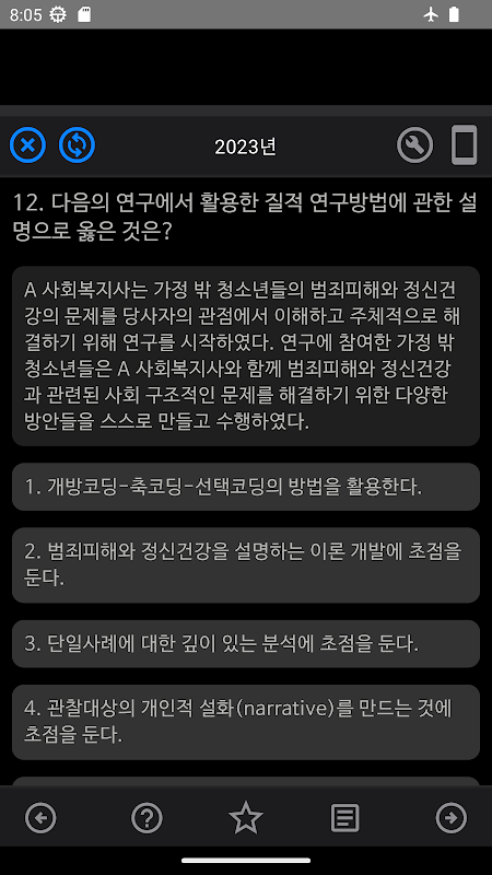 3. 您可以在問題畫面上以答案檢視模式解決問題。答案模式是如果您沒有太多基礎知識或想從頭開始學習時,請記住問題和答案來參加考試的模式。我認為這對於記憶簡單的知識或定義很有用。