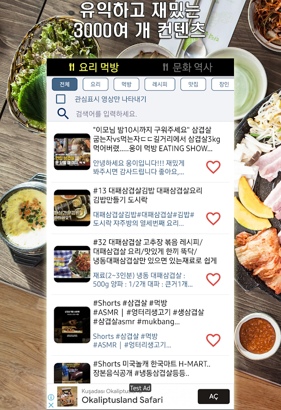 삼겹살 요리, 먹방, 레시피, 맛집, 그리고 역사에 관한 컨텐츠 2500여개가 한 어플에 담겨있다니.