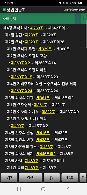 - 현재 조문 반복 듣기: 현재 선택된 조문을 무한 반복해서 들음