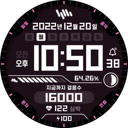 WatchFace 有一個電池、一個計步器和一個心率測量器。