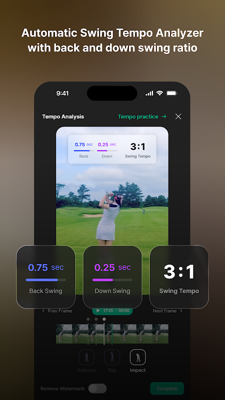 AI 驅動的擊球追蹤、桿頭追蹤、揮桿分析和節奏練習!