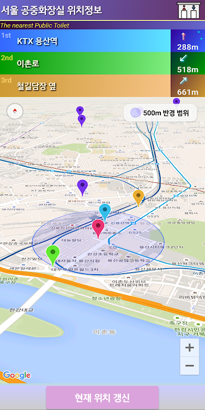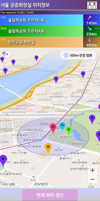 :此應用程序在地圖上顯示在首爾各個地區安裝的公共廁所的位置信息。