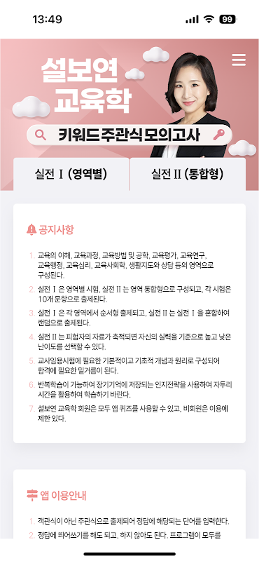 7. 所有Seolboyeon Education會員都可以使用該應用程式測驗,但非會員不得使用。
