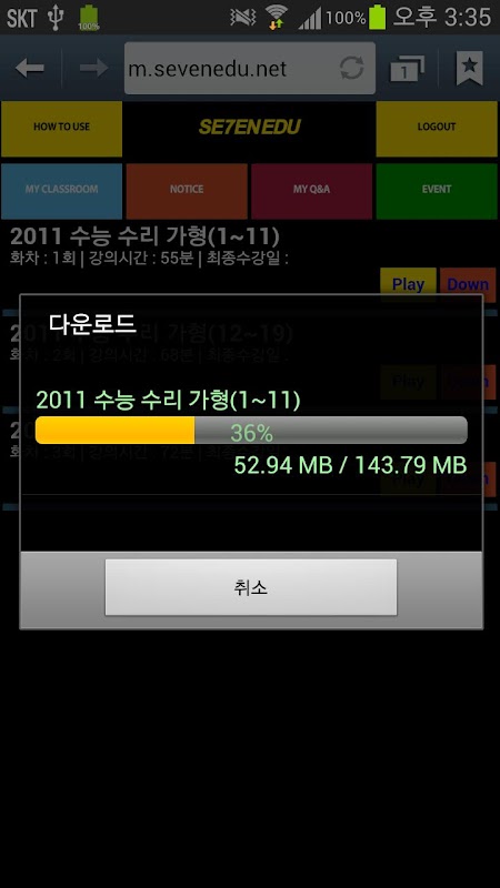 此應用程序正在播放或下載的移動講座七埃杜運行的應用程序。