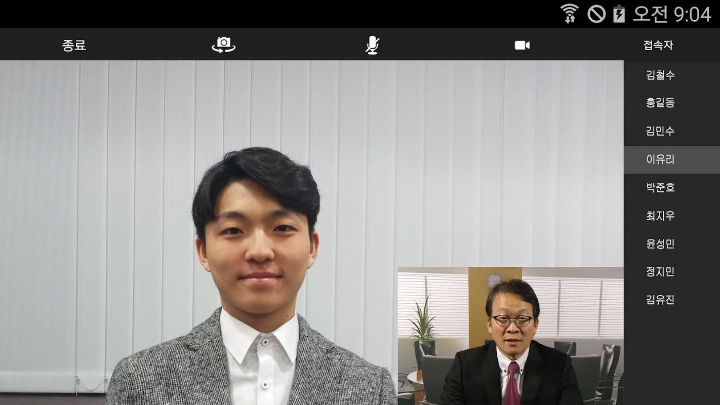 스마트폰-스마트폰, 스마트폰-컴퓨터간 화상면접을 지원하고, (1)구인면접, (2)모의면접, (3)취업상담 등 다양한 분야에 적용될 수 있습니다 .