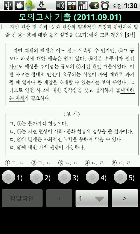 수능기출문제를 풀때 한문제씩 푸는 일반모드와 전체를 다 풀고 답을 맞춰볼 수 있는 시험모드 , 시험모드에서 틀린 문제를 저장했다 다시 확인할 수 있는 오답노트 모드를 제공합니다.