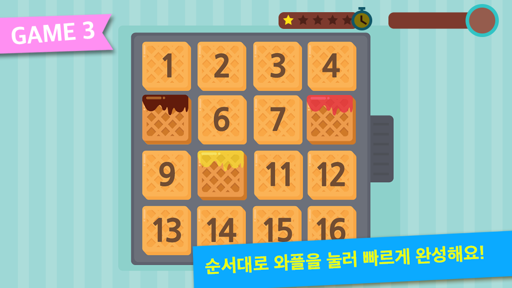 - 從編號最小的嘗試完成華夫餅烘焙板的華夫餅。