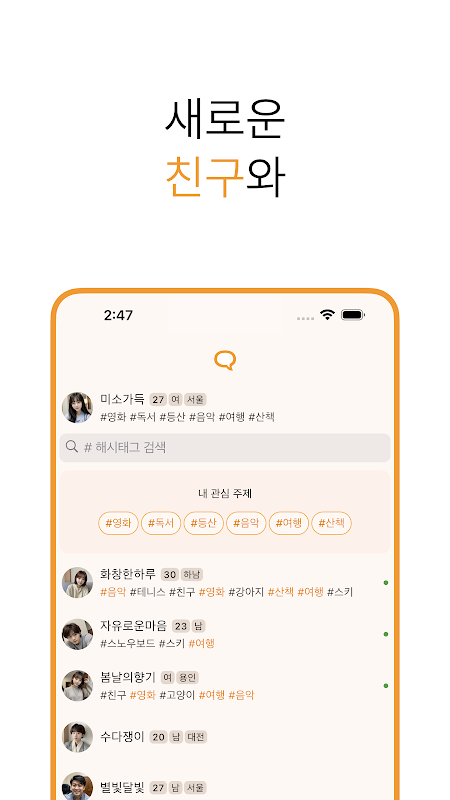 # 透過搜尋主題標籤找到各種聊天好友和線上好友。