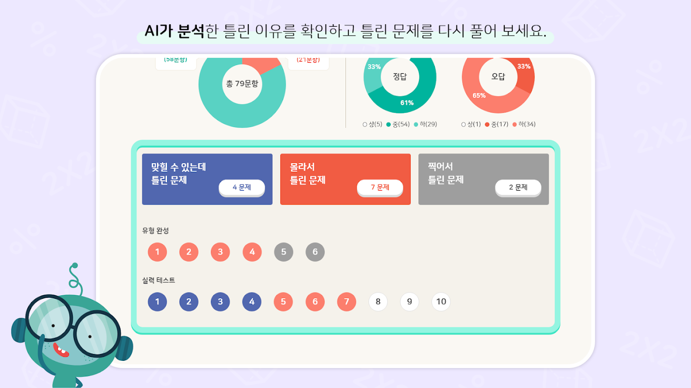 它為有效解決問題的學習提供了多種功能和內容。特別是根據學習成績,為每個孩子量身定制AI定制題和答錯孿生題。