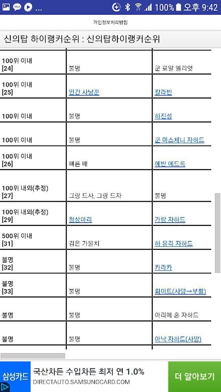 신의탑 랭킹 순위 - 하이랭커 순위정보歷史版本
