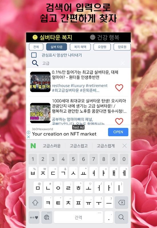 실버타운, 요양원 등 정보와 건강한 삶을 위한 중상 컨텐츠가 3000여개 수록되어있습니다。