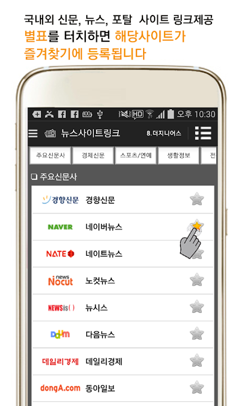 앱내에 국내외 모든 뉴스사이트 링크정보 및 신문사 사이트를 일목요연하게 정리해 놓았습니다