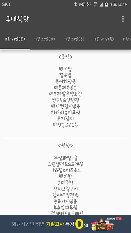 에이스하이엔드타워2차 구내식당 식단표 APK信息
