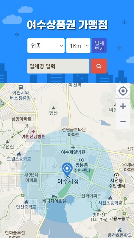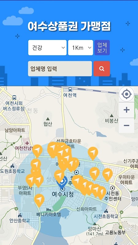 여수시 지역상품권 가맹점 현황을 현위치 정보로 주변 정보 확인