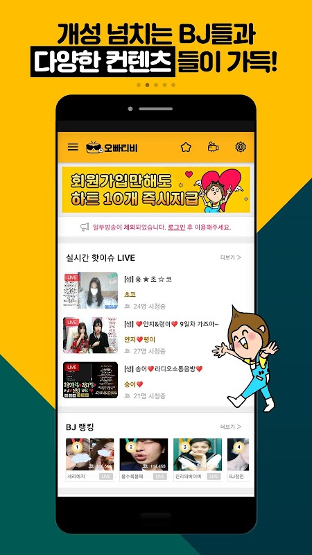 오빠티비에서는 늘 새로운 BJ / 새로운 컨텐츠 제공을 위해 노력합니다!